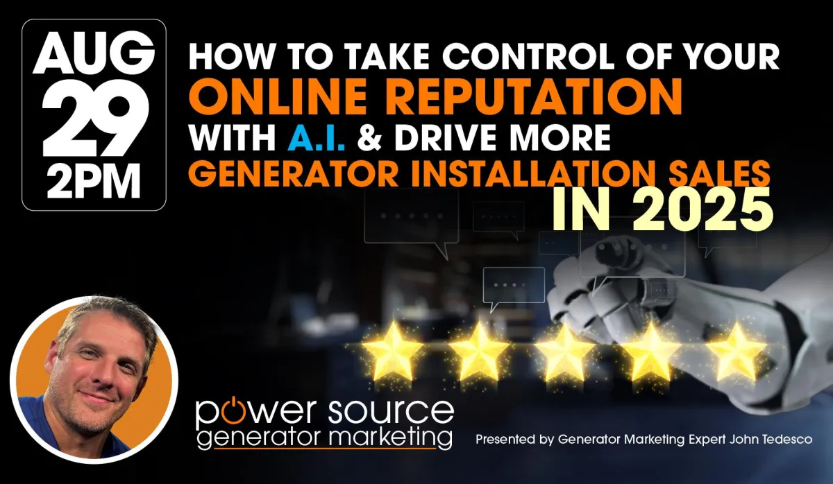 It’s no secret that your online reputation (namely, reviews) can make or break your business. This is particularly true for Generator Dealers. When you are installing such a high-priced investment, you need to be seen as trustworthy.